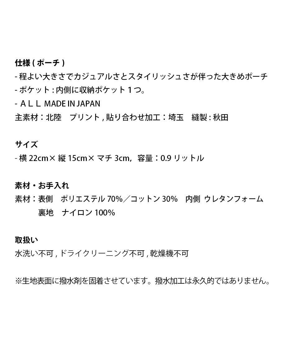 :ポーチ 横22×縦15×マチ3cm 容量:0.9リットル
